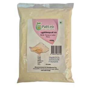 Product details of Palmyrah Boiled Tuber Flour 400g Simplify Your Healthy Kitchen with Palmyrah boild Tuber Flour!Short on time but big on taste and nutrition? Palmyrah boiled Tuber Flour is your secret weapon! Made from ground Palmyrah palm tubers that are conveniently pre-steamed, this innovative flour offers a delicious and nutritious gluten-free option.Unlock a Range of Potential Benefits:Boosted Bio-availability: Steaming unlocks nutrients, making them easier for your body to absorb.High Fiber Powerhouse: Palmyrah Tuber Flour is a natural source of dietary fiber, promoting gut health and digestion.Low Glycemic Index: It may help regulate blood sugar levels, making it a potentially good choice for those managing diabetes.Natural Source of Minerals: Palmyrah Tuber Flour may contribute essential minerals like potassium, magnesium, and phosphorus.Sustainable Choice: The Palmyrah palm thrives in tropical climates and requires minimal resources, making it an Eco-friendly flour option.